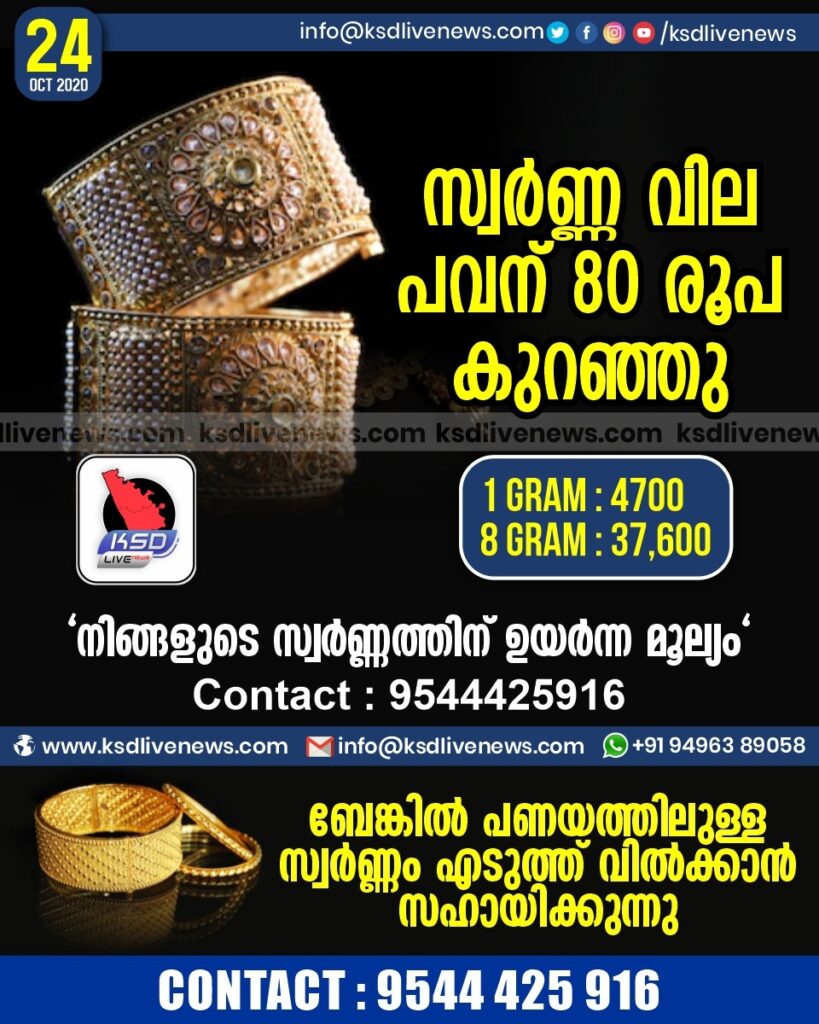 സ്വര്‍ണ്ണ വില പവന് 80 രൂപ കുറഞ്ഞു : 37600 രൂപയായി