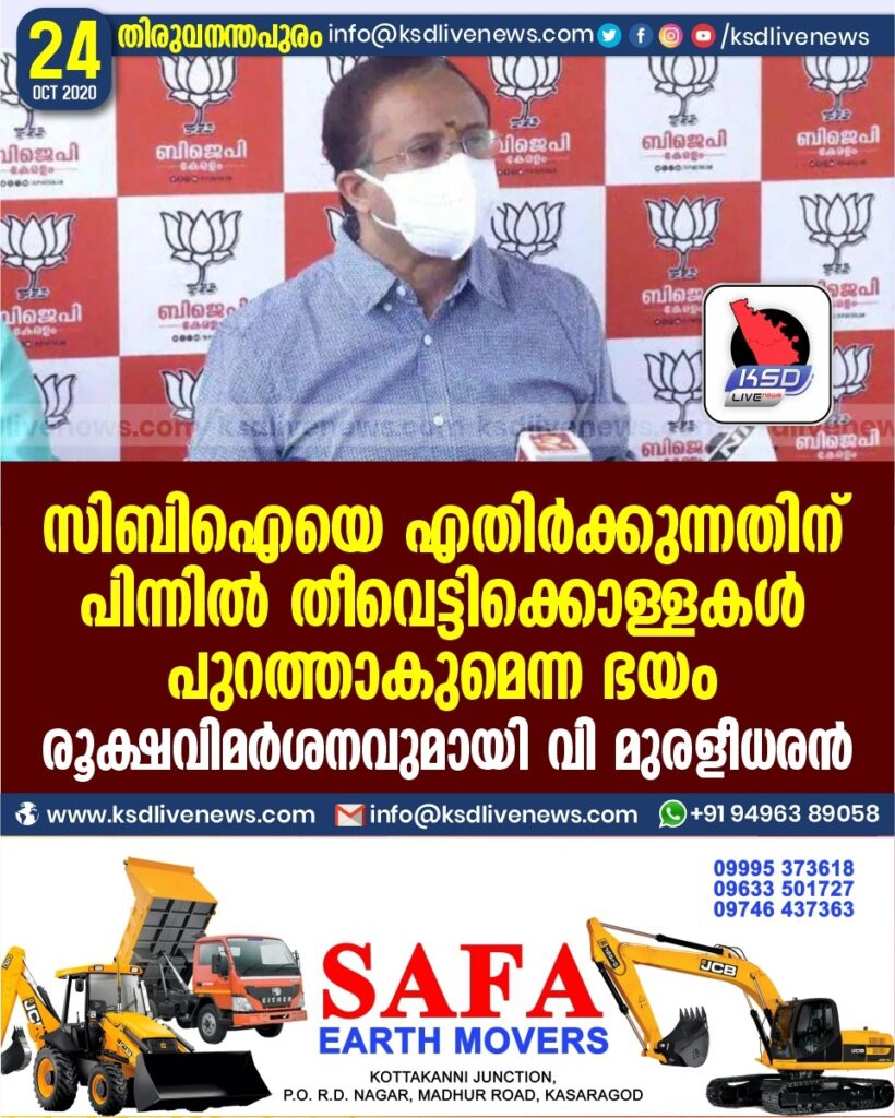 സിബിഐയെ എതിർക്കുന്നതിന് പിന്നിൽ തീവെട്ടിക്കൊള്ളകൾ പുറത്താകുമെന്ന ഭയം : രൂക്ഷവിമർശനവുമായി വി മുരളീധരൻ
