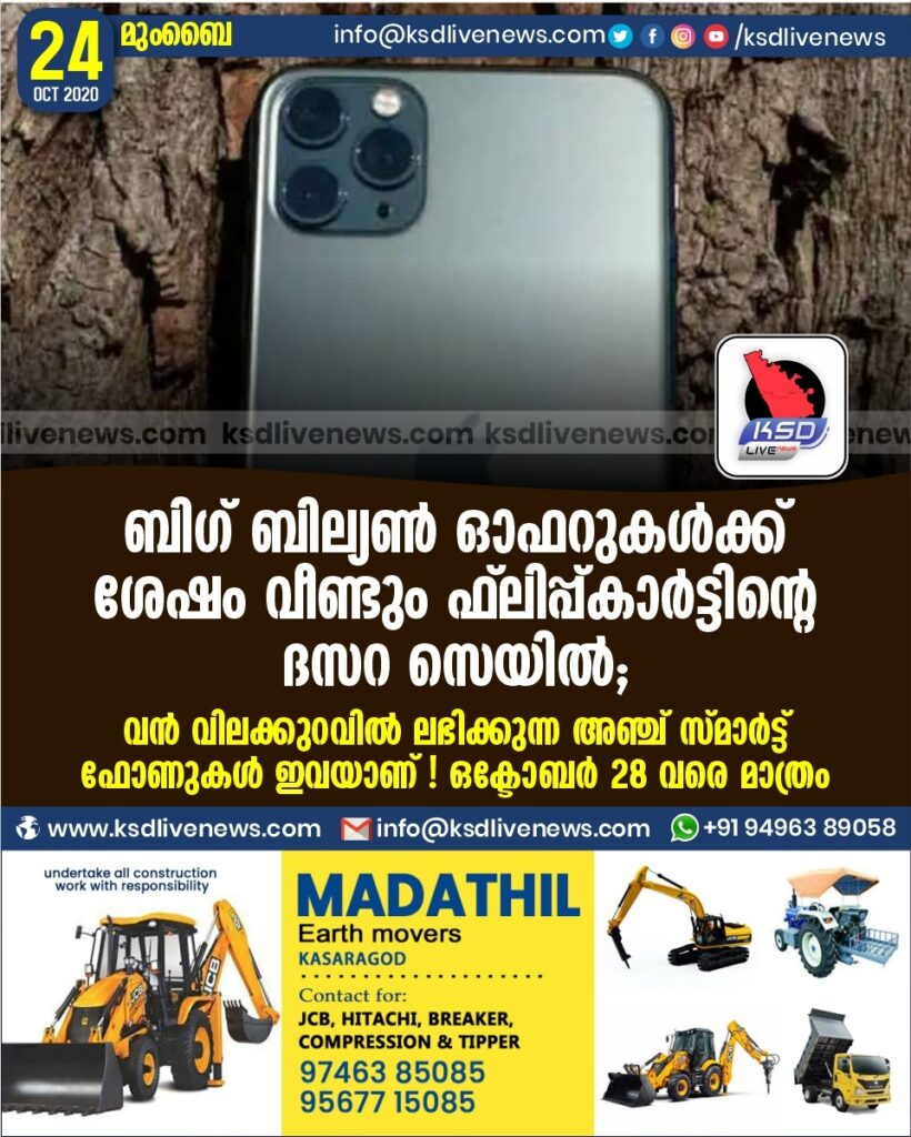 ബിഗ് ബില്യൺ ഓഫറുകൾക്ക് ശേഷം വീണ്ടും ഫ്ലിപ്പ്കാർട്ടിന്റെ ദസറ സെയിൽ ; വൻ വിലക്കുറവിൽ ലഭിക്കുന്ന അഞ്ച് സ്മാർട്ട് ഫോണുകൾ ഇവയാണ്.! ഒക്ടോബർ 28 വരെ മാത്രം