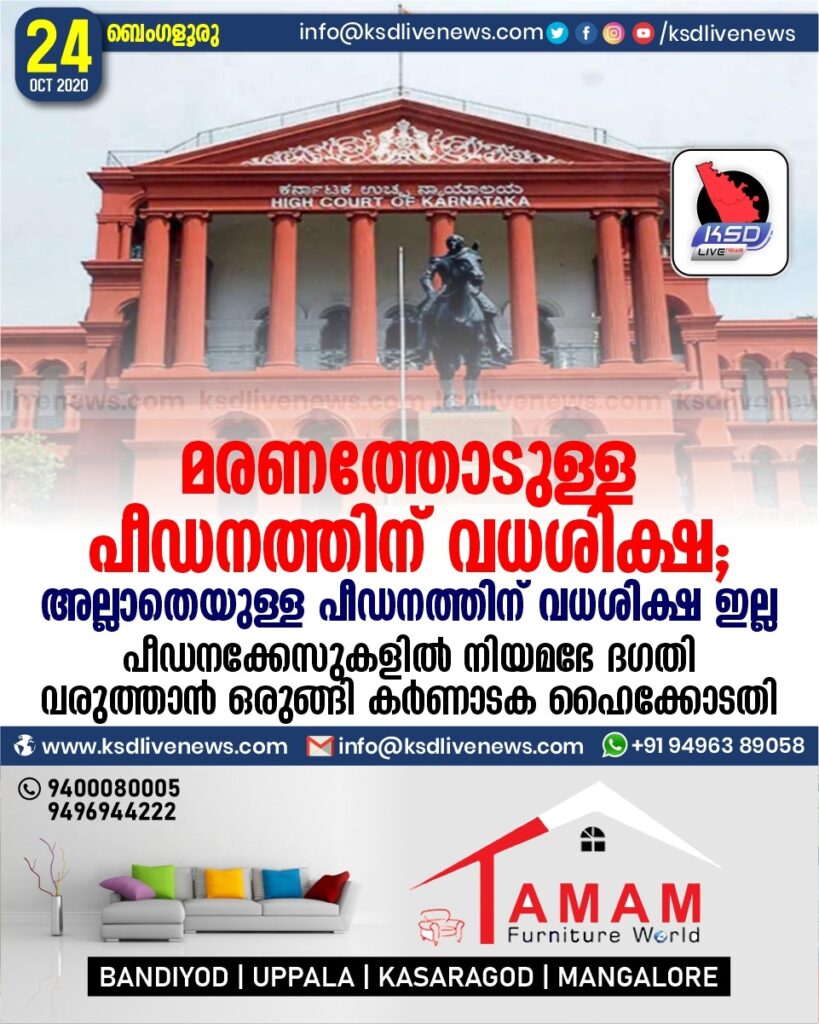 മരണത്തോടുള്ള പീഡനത്തിന് വധശിക്ഷ അല്ലാതെയുള്ള പീഡനത്തിന് വധശിക്ഷ ഇല്ല” ; പീഡനക്കേസുകളിൽ നിയമഭേ ദഗതി വരുത്താൻ ഒരുങ്ങി കർണാടക ഹൈക്കോടതി