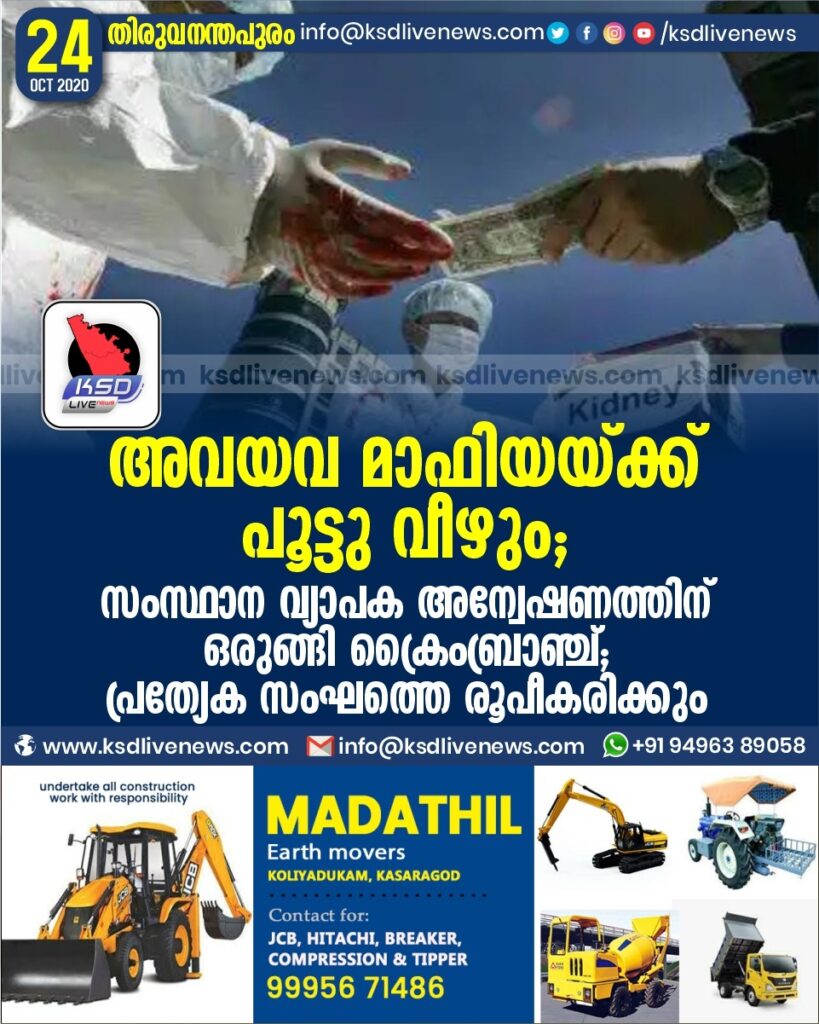 അവയവ മാഫിയയ്ക്ക് പൂട്ടു വീഴും ; സംസ്ഥാന വ്യാപക അന്വേഷണത്തിന് ഒരുങ്ങി ക്രൈംബ്രാഞ്ച് ; പ്രത്യേക സംഘത്തെ രൂപീകരിക്കും