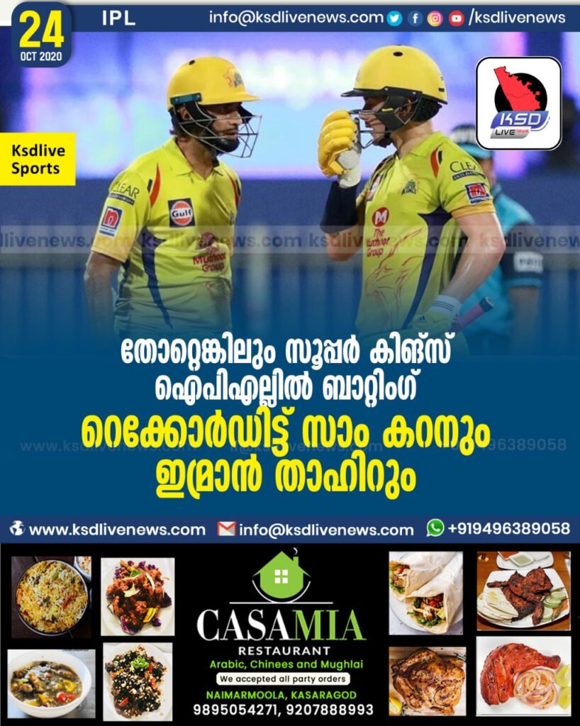 തോറ്റെങ്കിലും സൂപ്പർ കിങ്സ് ഐപിഎല്ലിൽ ബാറ്റിംഗ് റെക്കോർഡിട്ട് സാം കറനും ഇമ്രാൻ താഹിറും