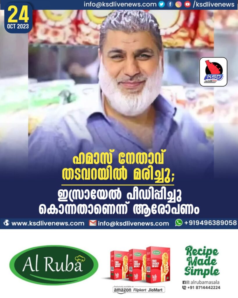 ഹമാസ് നേതാവ് തടവറയിൽ മരിച്ചു; ഇസ്രായേൽ പീഡിപ്പിച്ചു കൊന്നതാണെന്ന് ആരോപണം