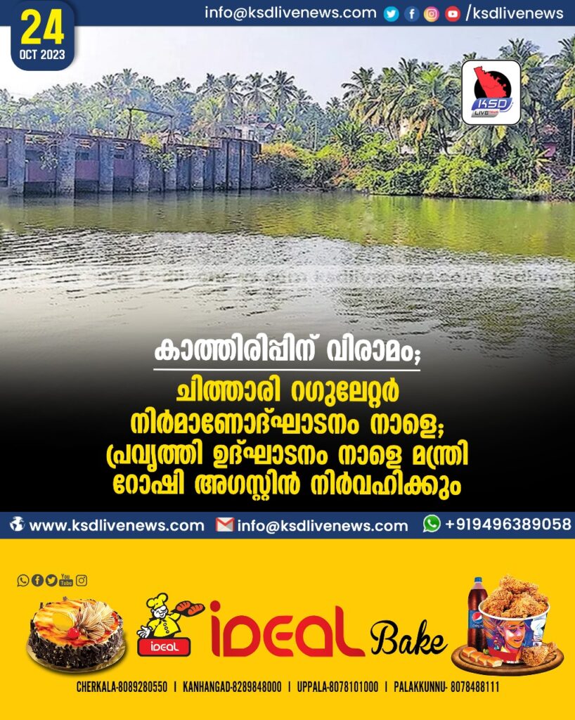 കാത്തിരിപ്പിന് വിരാമം; ചിത്താരി റഗുലേറ്റർ നിർമാണോദ്ഘാടനം നാളെ; പ്രവൃത്തി ഉദ്ഘാടനം നാളെ മന്ത്രി റോഷി അഗസ്റ്റിൻ നിർവഹിക്കും