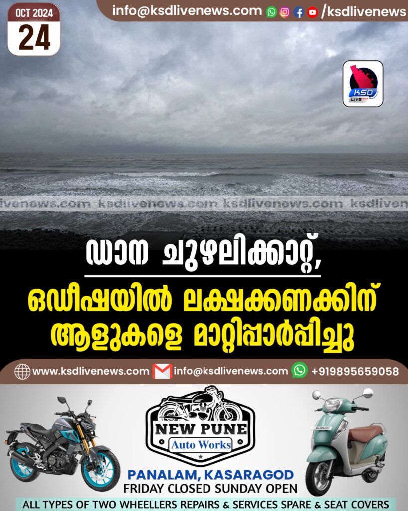 ഡാന ചുഴലിക്കാറ്റ്, ഒഡീഷയില് ലക്ഷക്കണക്കിന് ആളുകളെ മാറ്റിപ്പാര്പ്പിച്ചു