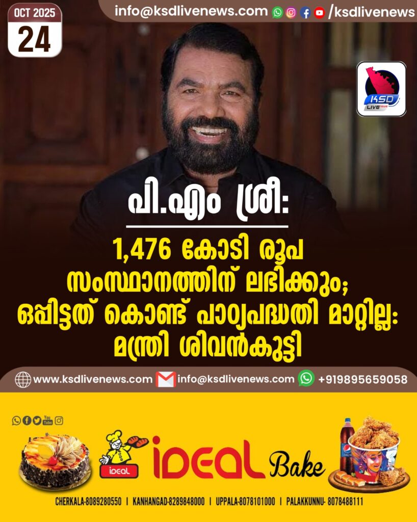 പി എം ശ്രീ: 1,476 കോടി രൂപ സംസ്ഥാനത്തിന് ലഭിക്കും; പാഠ്യപദ്ധതി മാറ്റില്ല: മന്ത്രി ശിവന്കുട്ടി