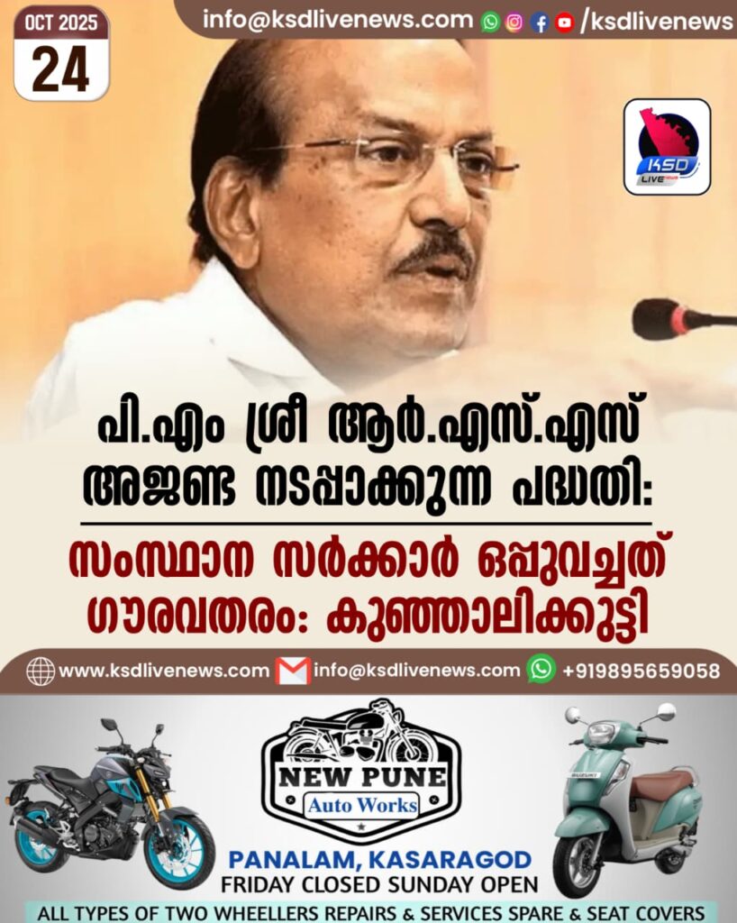 ആര് എസ് എസിന്റെ അജണ്ട നടപ്പിലാക്കുന്ന പാഠ്യപദ്ധതിയാണ് പി എം ശ്രീ. അതുമായി ചേര്ന്നുപോകാനുള്ള തീരുമാനം വളരെ ഗൗരവമേറിയ വിഷയമാണെന്നും കുഞ്ഞാലിക്കുട്ടി പറഞ്ഞു.