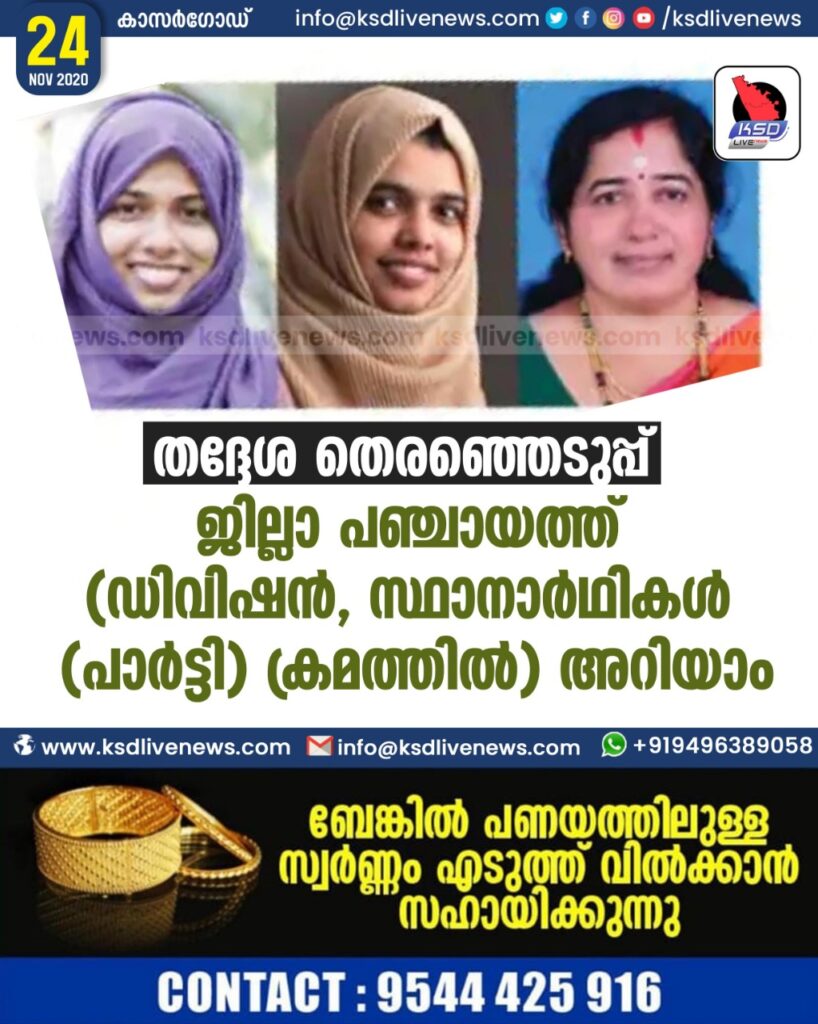 ജില്ലാ പഞ്ചായത്ത് (ഡിവിഷൻ, സ്ഥാനാർഥികൾ (പാർട്ടി) ക്രമത്തിൽ) അറിയാം