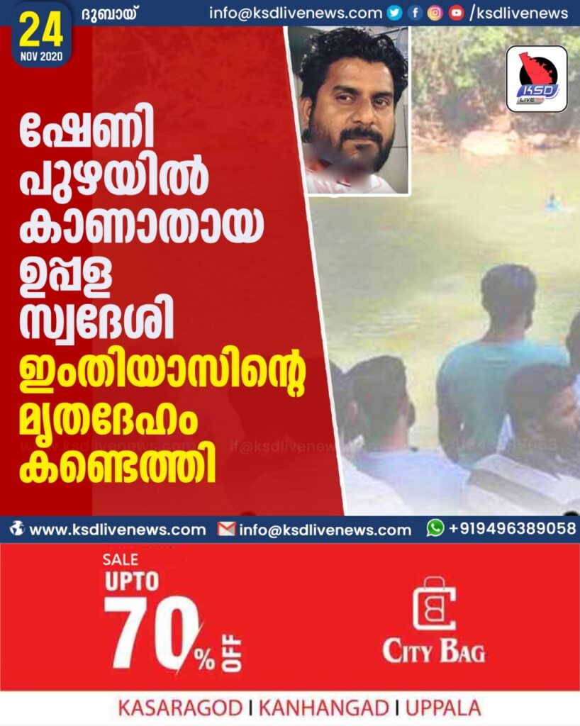 ഷേണി പുഴയില് കാണാതായ ഉപ്പള സ്വദേശി ഇംതിയാസിന്റെ മൃതദേഹം കണ്ടെത്തി