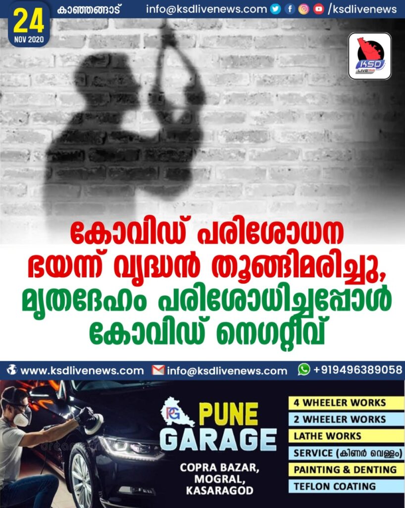 കോവിഡ് പരിശോധന ഭയന്ന് വൃദ്ധൻ തൂങ്ങിമരിച്ചു , മൃതദേഹം പരിശോധിച്ചപ്പോൾ കോവിഡ് നെഗറ്റീവ്