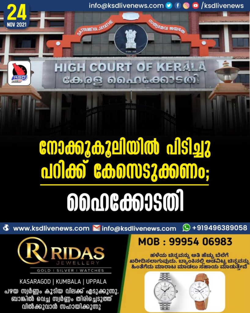 നോക്കുകൂലി എന്ന പരാതിയിൽ യൂണിയൻ നേതാക്കൾക്കെതിരേയും നടപടി വേണം. എങ്കിേല ഇത് തടയാനാകൂ. പിടിച്ചുപറിക്കു പുറമേ ഐ.പി.സി. പ്രകാരമുള്ള മറ്റു വകുപ്പുകൾ പ്രകാരവും കേസെടുക്കണം. വെറുതേ ഉത്തരവിട്ടാൽ മാത്രം തടയാനാകില്ല നോക്കൂകൂലിയെന്നും കോടതി അഭിപ്രായപ്പെട്ടു.