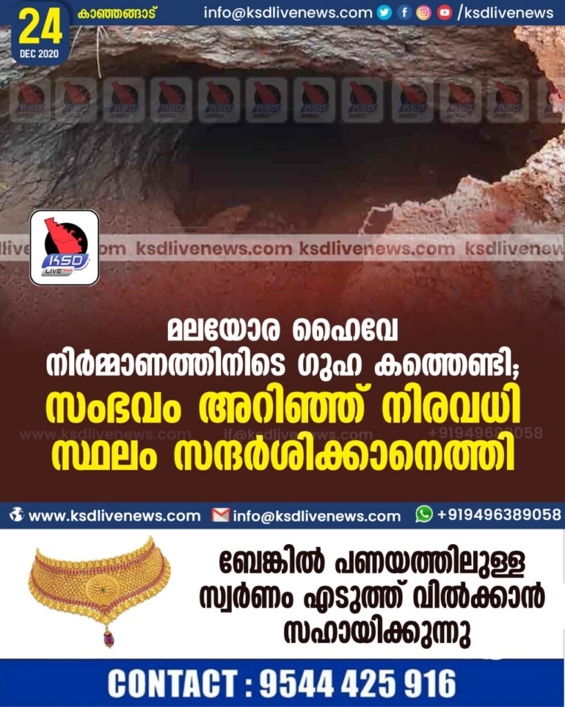മലയോര ഹൈവേ നിർമ്മാണത്തിനിടെ ഗുഹ കണ്ടെത്തി ; സംഭവം അറിഞ്ഞ് നിരവധി സ്ഥലം സന്ദർശിക്കാനെത്തി