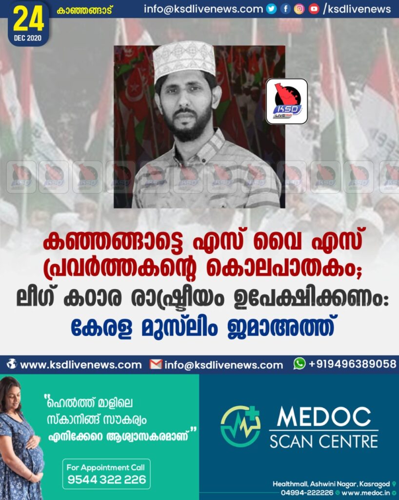 കഞ്ഞങ്ങാട്ടെ എസ് വൈ എസ് പ്രവർത്തകന്റെ കൊലപാതകം ; ലീഗ് കഠാര രാഷ്ട്രീയം ഉപേക്ഷിക്കണം : കേരള മുസ്’ലിം ജമാഅത്ത്
