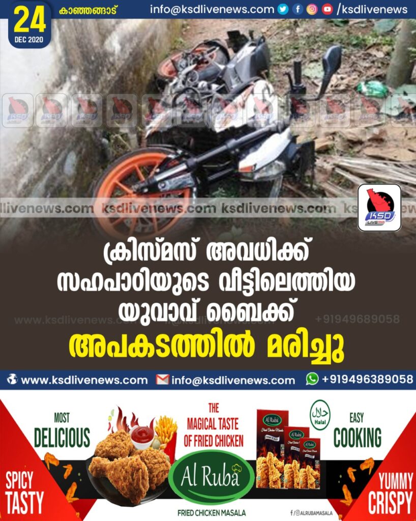 ക്രിസ്മസ് അവധിക്ക് സഹപാഠിയുടെ വീട്ടിലെത്തിയ യുവാവ് ബൈക്ക് അപകടത്തില് മരിച്ചു