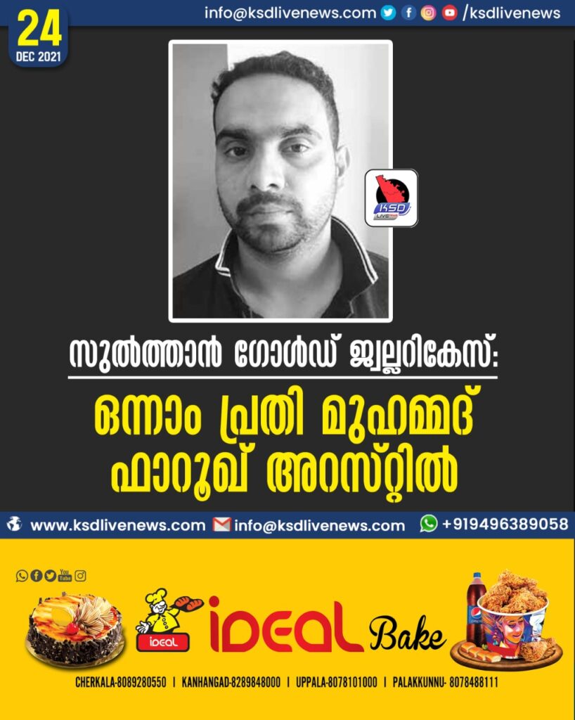 സുല്‍ത്താന്‍ ഗോള്‍ഡ്‌ ജ്വല്ലറി കേസ്‌: ഒന്നാം പ്രതി മുഹമ്മദ്‌ ഫാറൂഖ് അറസ്‌റ്റില്‍