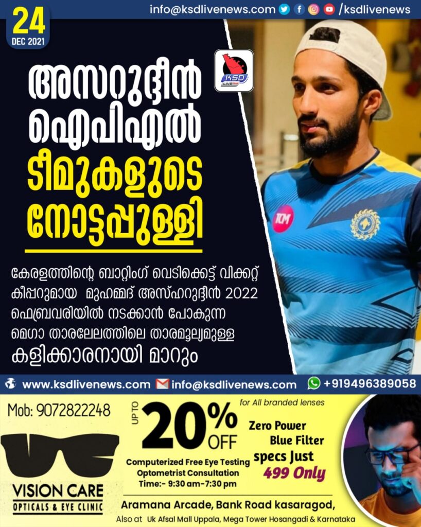 അസറുദ്ദീൻ ഐപിഎൽ ടീമുകളുടെ നോട്ടപ്പുള്ളി