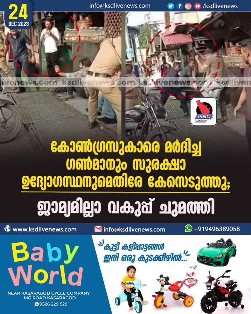 കോൺഗ്രസുകാരെ മർദിച്ച ഗൺമാനും സുരക്ഷാ ഉദ്യോഗസ്ഥനുമെതിരേ കേസെടുത്തു; ജാമ്യമില്ലാ വകുപ്പ് ചുമത്തി