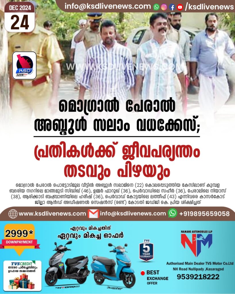 മൊഗ്രാൽ പേരാൽ അബ്ദുൾ സലാം വധക്കേസ്; പ്രതികൾക്ക് ജീവപര്യന്തം തടവും പിഴയും