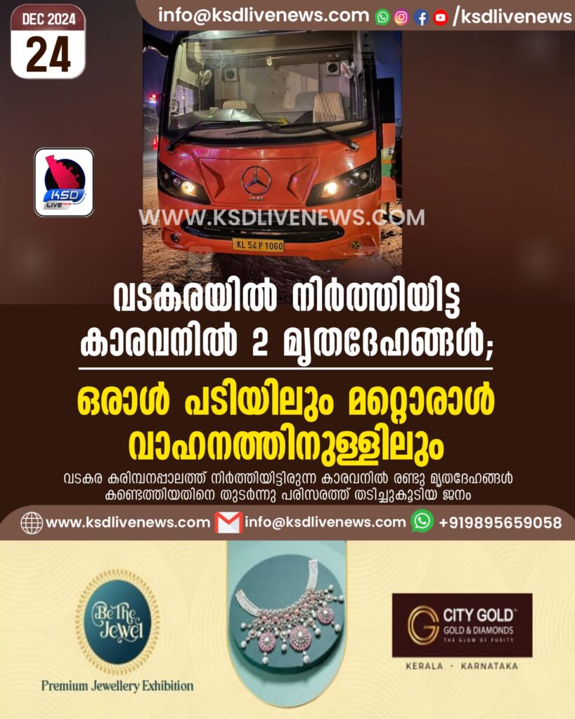 വടകരയിൽ നിർത്തിയിട്ട കാരവനിൽ 2 മൃതദേഹങ്ങൾ; ഒരാൾ പടിയിലും മറ്റൊരാൾ വാഹനത്തിനുള്ളിലും