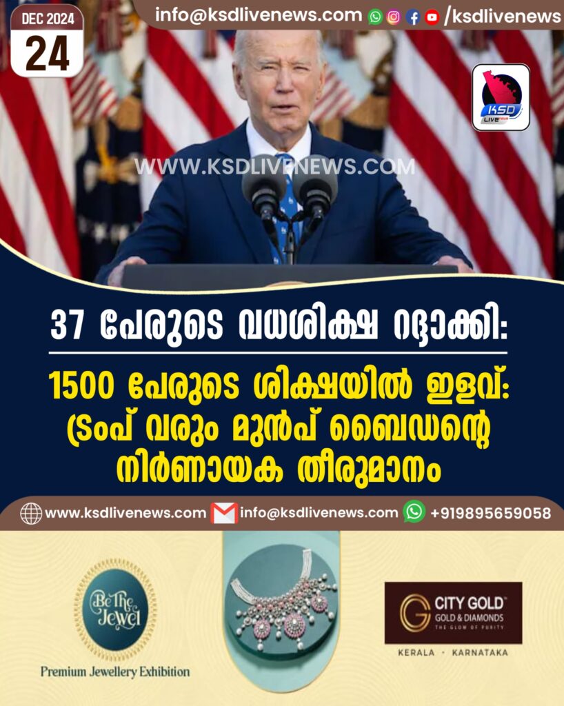 37 പേരുടെ വധശിക്ഷ റദ്ദാക്കി, 1500 പേരുടെ ശിക്ഷയിൽ ഇളവ്: ട്രംപ് വരും മുൻപ് ബൈഡന്റെ നിർണായക തീരുമാനം