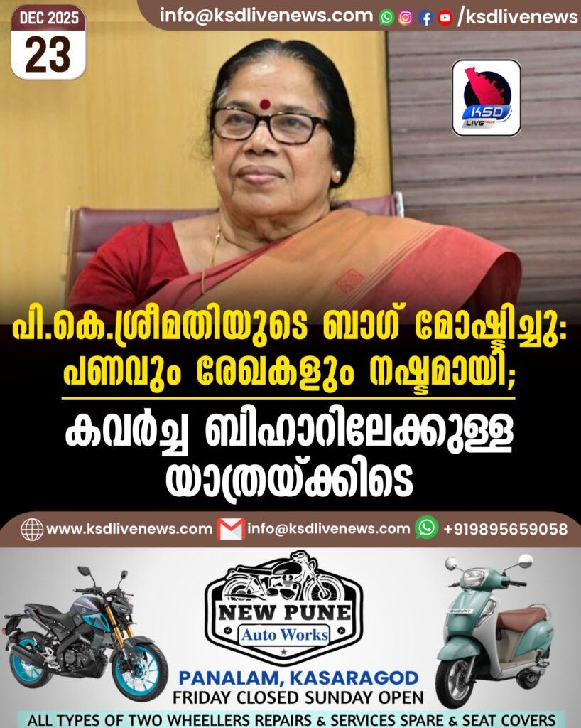 പി.കെ.ശ്രീമതിയുടെ ബാഗ് മോഷ്ടിച്ചു: പണവും രേഖകളും നഷ്ടമായി; കവർച്ച ബിഹാറിലേക്കുള്ള യാത്രയ്ക്കിടെ