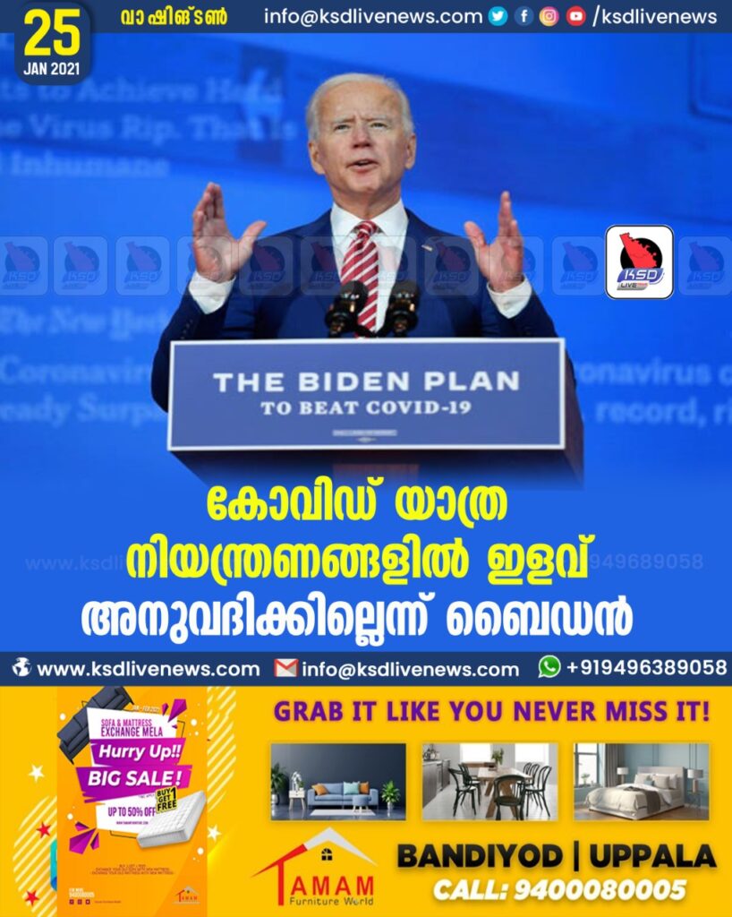 കോവിഡ് യാത്ര നിയന്ത്രണങ്ങളിൽ ഇളവ് അനുവദിക്കില്ലെന്ന് ബൈഡൻ