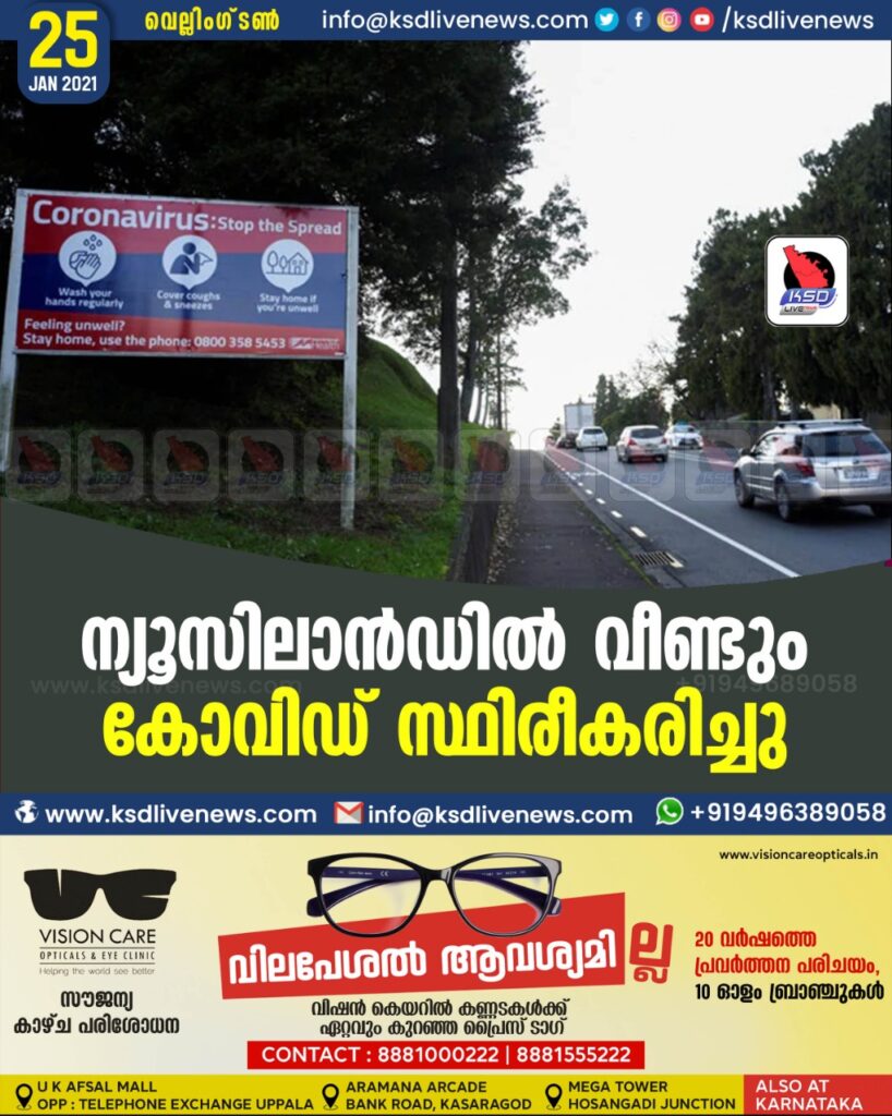 ന്യൂസിലാൻഡിൽ വീണ്ടും കോവിഡ് സ്ഥിരീകരിച്ചു