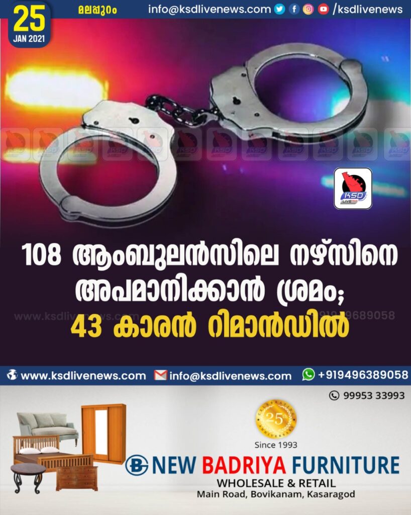 ആംബുലൻസിലെ നഴ്സിനെ അപമാനിക്കാൻ ശ്രമം ; 43 കാരൻ റിമാൻഡിൽ