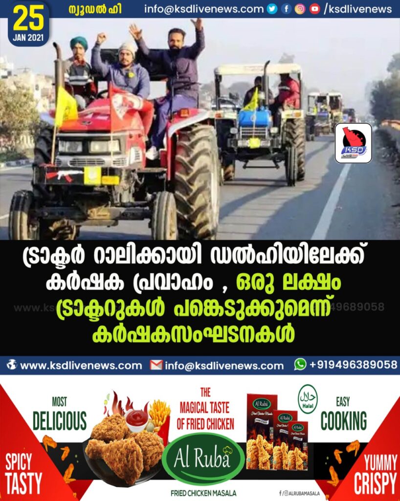 ട്രാക്ടർ റാലിക്കായി ഡൽഹിയിലേക്ക് കർഷക പ്രവാഹം , ഒരു ലക്ഷം ട്രാക്ടറുകൾ പങ്കെടുക്കുമെന്ന് കർഷകസംഘടനകൾ