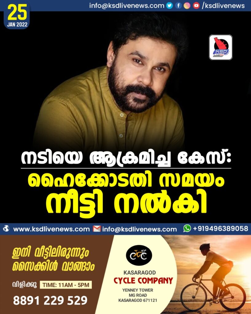 നടിയെ ആക്രമിച്ച കേസ്: ഹൈക്കോടതി സമയം നീട്ടി നല്കി