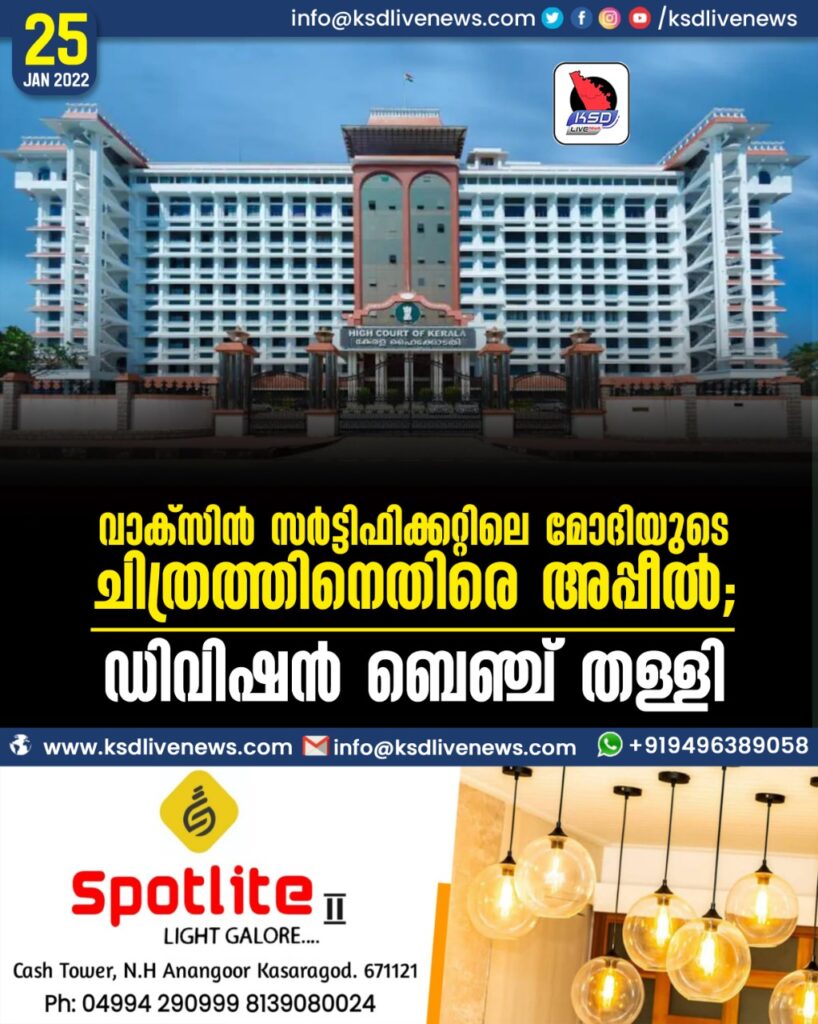 വാക്സിൻ സർട്ടിഫിക്കറ്റിലെ മോദിയുടെ ചിത്രത്തിനെതിരെ അപ്പീൽ; ഡിവിഷൻ ബെഞ്ച് തള്ളി