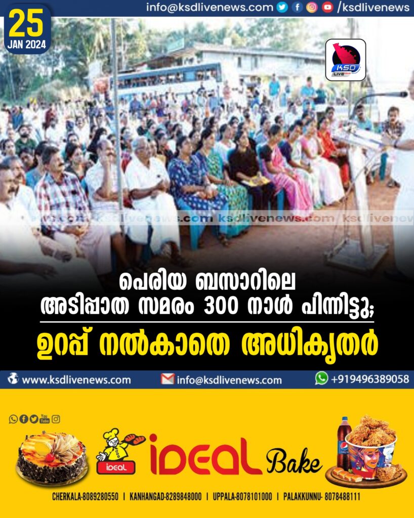 മൂന്നൂറ് നാൾ പിന്നിട്ട ചൊവ്വാഴ്ച പെരിയ ബസാറിൽ ബഹുജന സംഗമം സംഘടിപ്പിച്ചു. മുൻ എം.എൽ.എ. കെ. കുഞ്ഞിരാമൻ സംഗമം ഉദ്ഘാടനംചെയ്തു. പഞ്ചായത്ത് പ്രസിഡന്റ് സി.കെ. അരവിന്ദൻ അധ്യക്ഷതവഹിച്ചു. ടി. രാമകൃഷ്ണൻ നായർ, ടി.വി. കരിയൻ, ടി.വി. അശോകൻ, ലത രാഘവൻ, എ.എം. മുരളീധരൻ, പ്രമോദ് പെരിയ, നാരായണൻ മാളൂട്ടി, ടി.കെ. ബാലൻ, അബ്ദുള്ള ഷാഫി, പി. കൃഷ്ണൻ എന്നിവർ സംസാരിച്ചു.