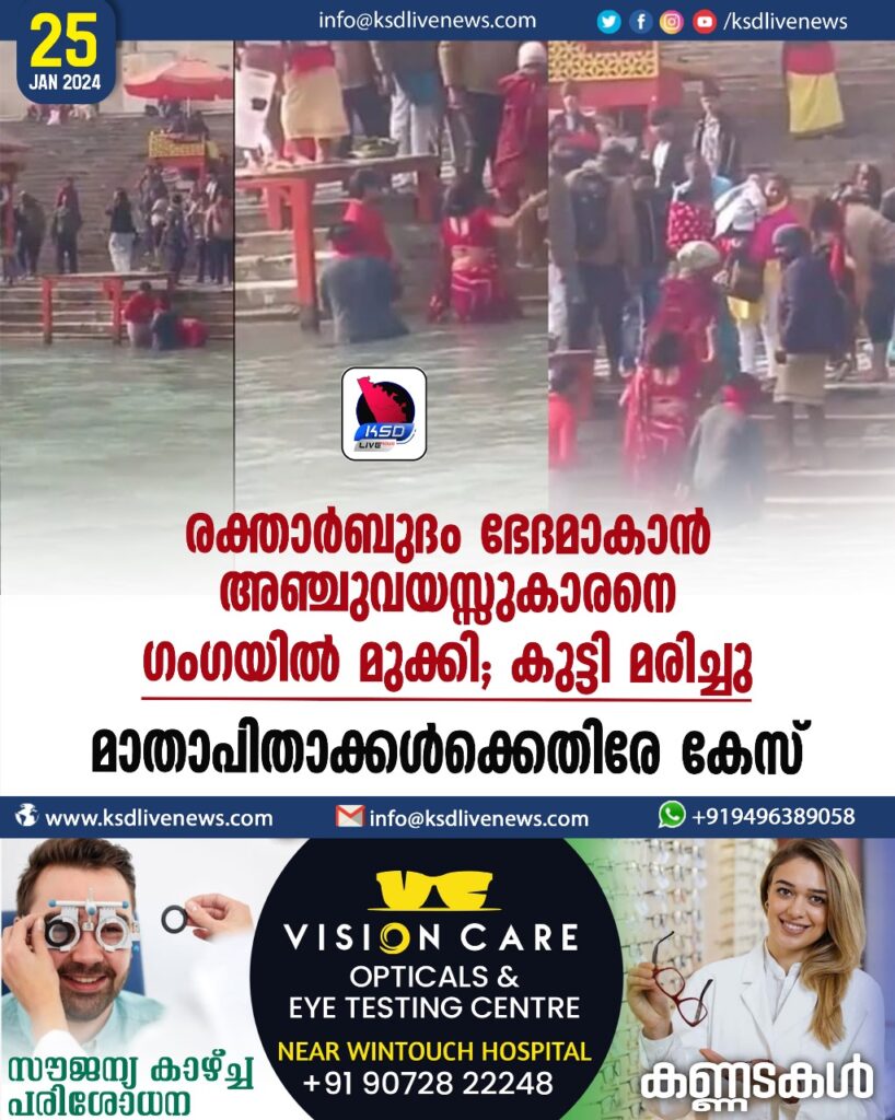 രക്താർബുദം ഭേദമാകാൻ അഞ്ചുവയസ്സുകാരനെ ഗംഗയില്‍ മുക്കി; കുട്ടി മരിച്ചു, മാതാപിതാക്കള്‍ക്കെതിരേ കേസ്;
