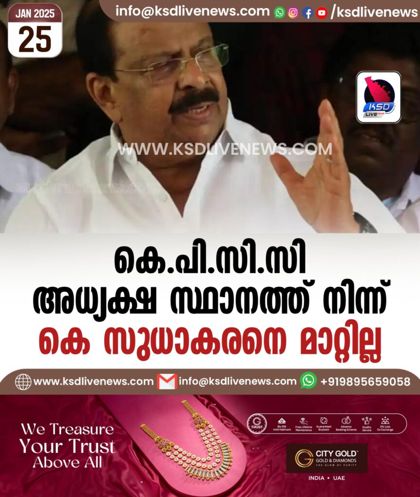 കെപിസിസി അധ്യക്ഷ സ്ഥാനത്ത് നിന്ന് കെ സുധാകരനെ മാറ്റില്ല