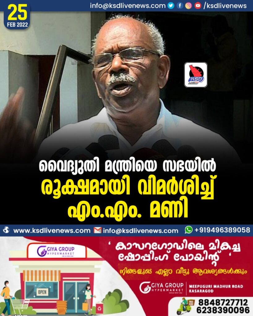 വൈദ്യുതി മന്ത്രിയെ സഭയില് രൂക്ഷമായി വിമര്ശിച്ച് എം.എം. മണി