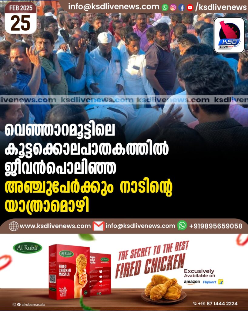 വെഞ്ഞാറമൂട്ടിലെ കൂട്ടക്കൊലപാതകത്തിൽ ജീവൻപൊലിഞ്ഞ അഞ്ചുപേർക്കും നാടിന്റെ യാത്രാമൊഴി