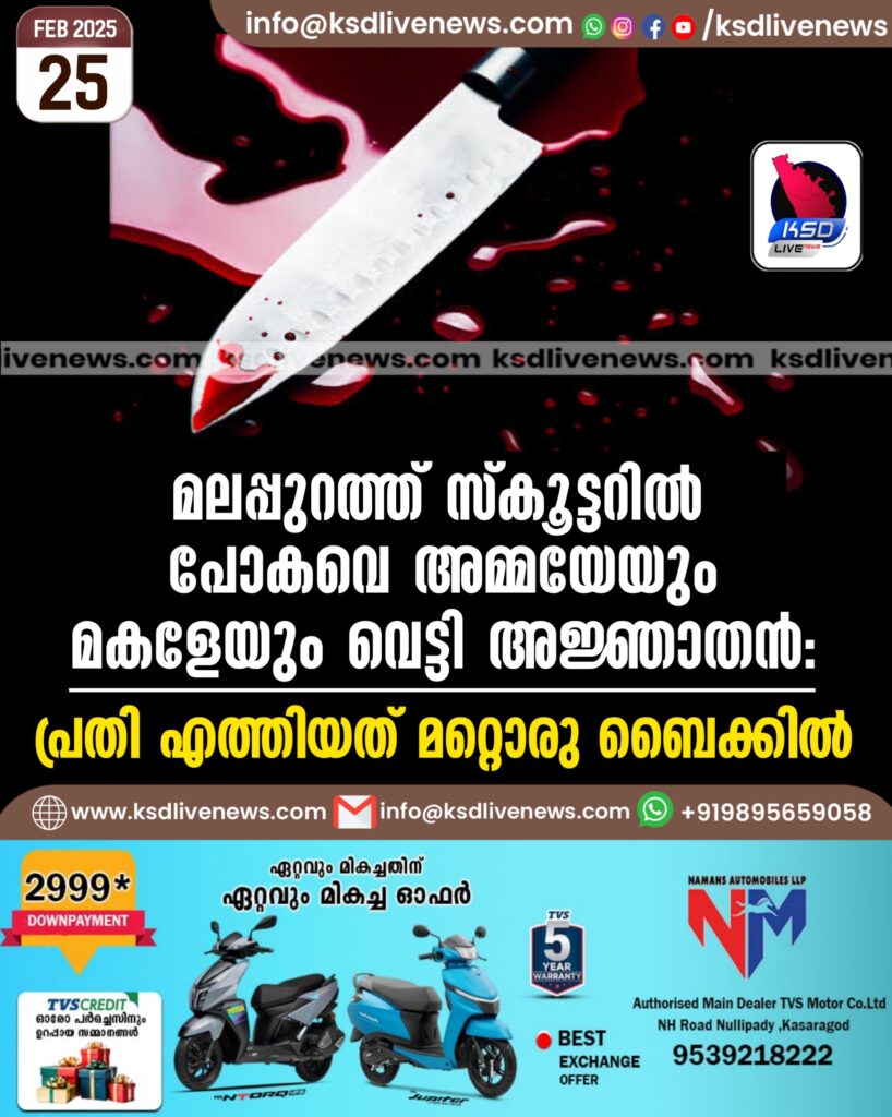 മലപ്പുറത്ത് സ്കൂട്ടറില് പോകവെ അമ്മയേയും മകളേയും വെട്ടി അജ്ഞാതൻ: പ്രതി എത്തിയത് മറ്റൊരു ബൈക്കിൽ