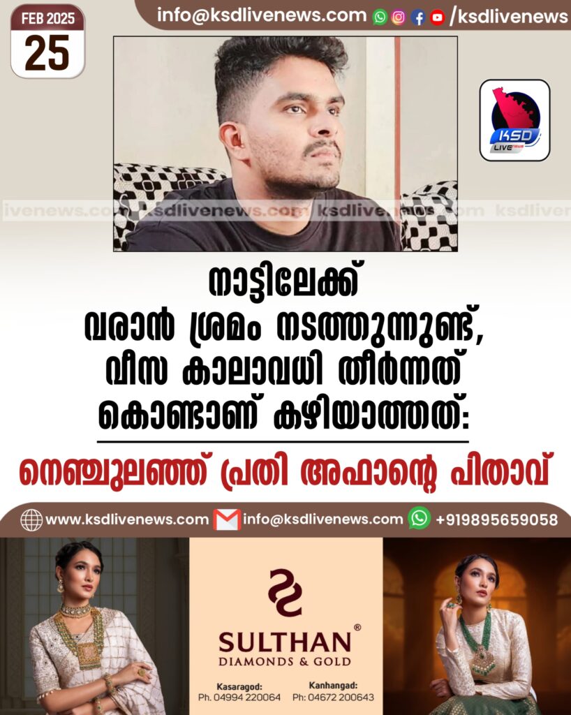 നാട്ടിലേക്ക് വരാന് ശ്രമം നടത്തുന്നുണ്ട്, വീസ കാലാവധി തീര്ന്നത് കൊണ്ടാണ് കഴിയാത്തത്: നെഞ്ചുലഞ്ഞ് പ്രതി അഫാന്റെ പിതാവ്