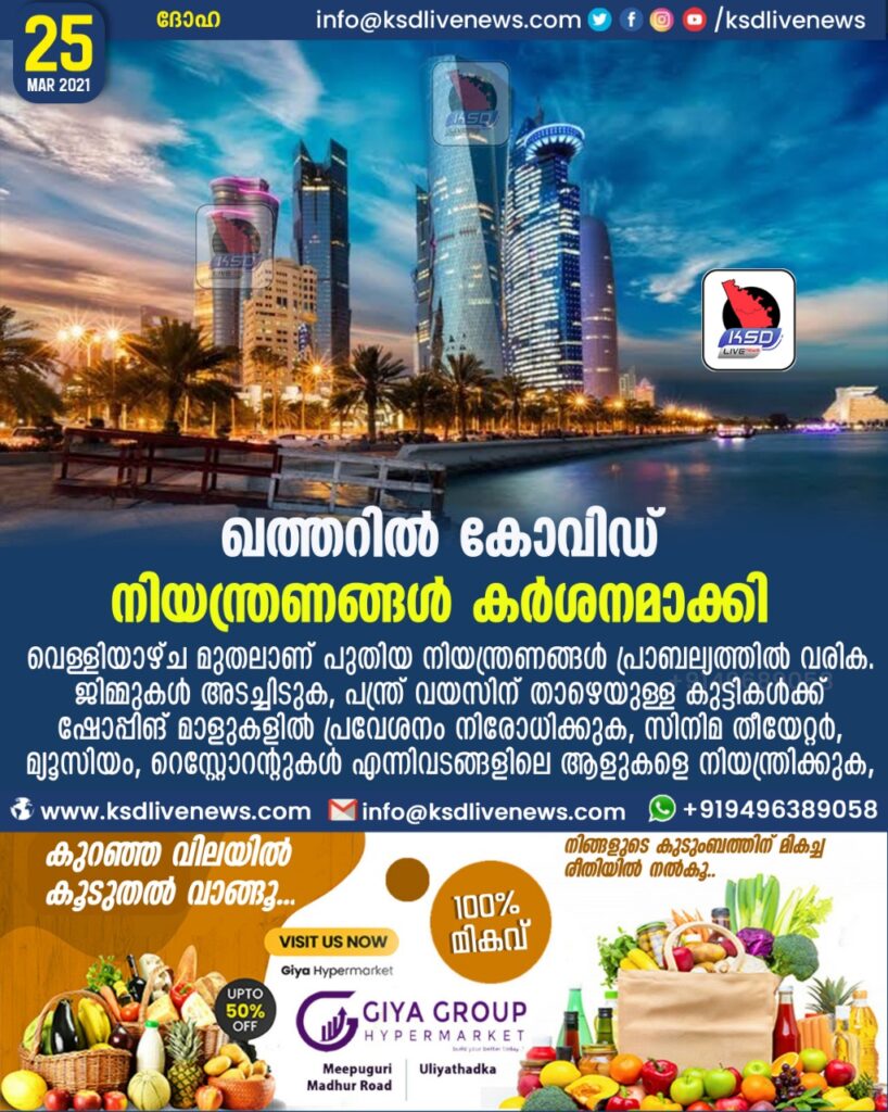 ഖത്തറിൽ കൊവിഡ് നിയന്ത്രണങ്ങൾ കർശനമാക്കി