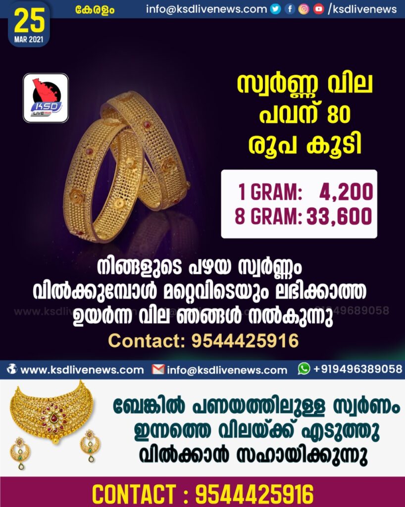 സ്വർണ്ണ വില പവന് 80 രൂപ കൂടി
