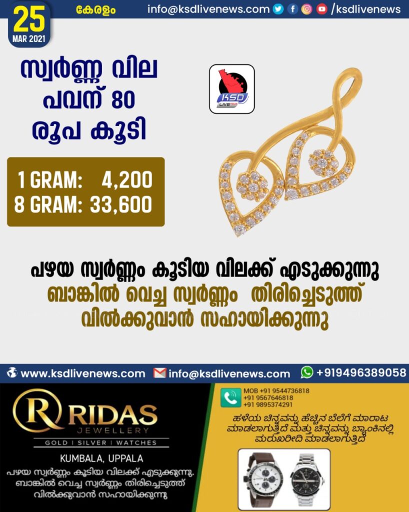 സ്വർണ്ണ വില പവന് 80 രൂപ കൂടി 33,600 രൂപയായി