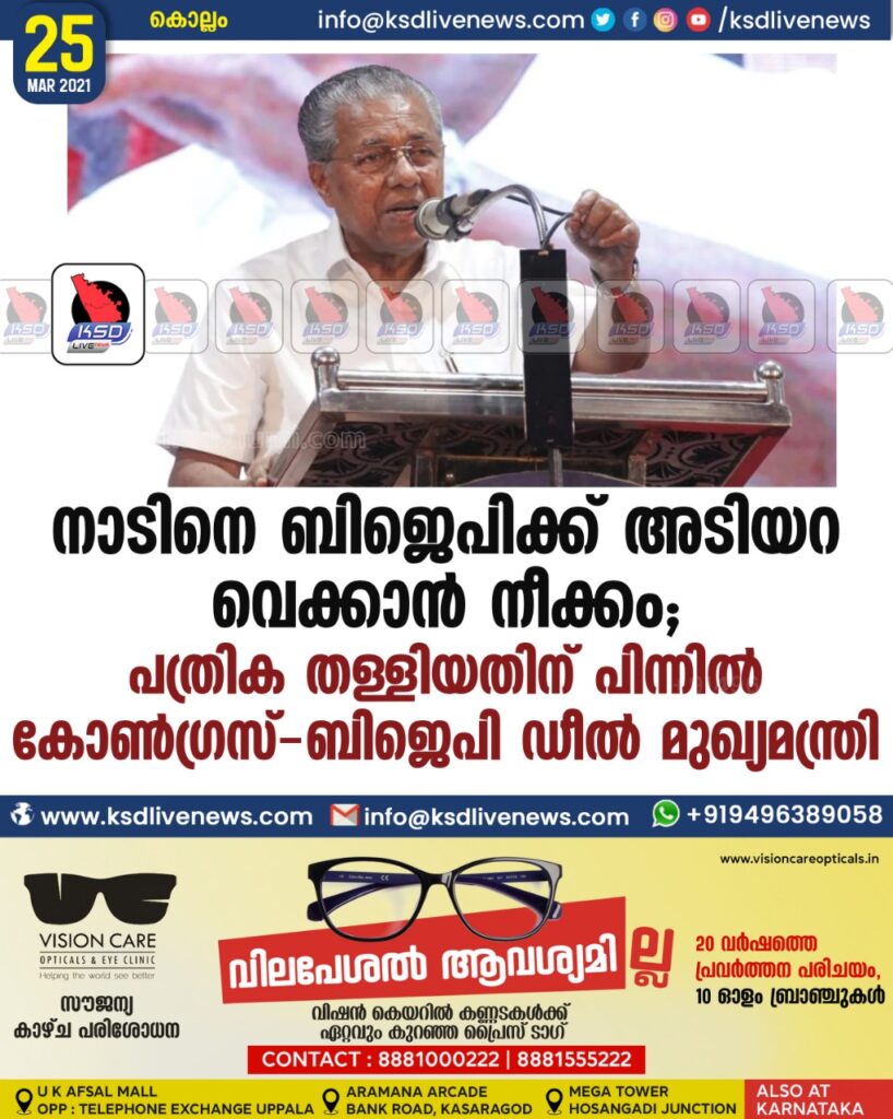 നാടിനെ ബിജെപിക്ക് അടിയറ വെക്കാൻ നീക്കം; പത്രിക തള്ളിയതിന് പിന്നിൽ കോൺഗ്രസ് – ബിജെപി ഡീൽ – മുഖ്യമന്ത്രി