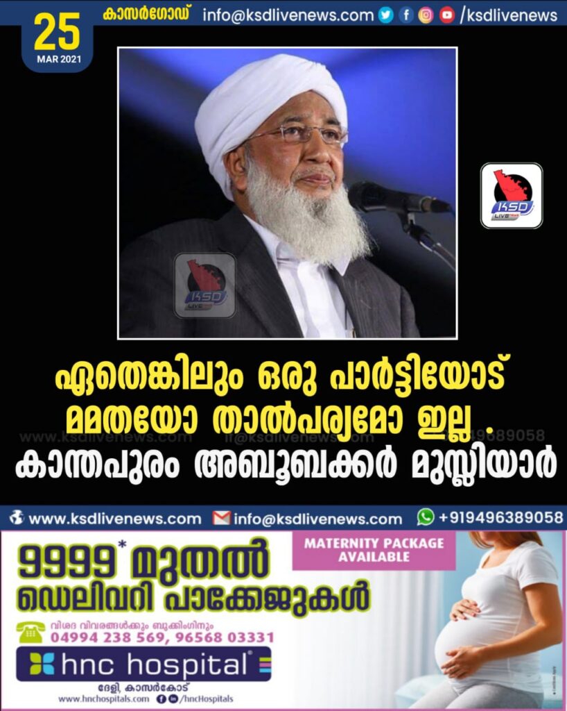 ഏതെങ്കിലും ഒരു പാർട്ടിയോട് മമതയോ താൽപര്യമോ ഇല്ല . കാന്തപുരം അബൂബക്കർ മുസ്ലിയാർ
