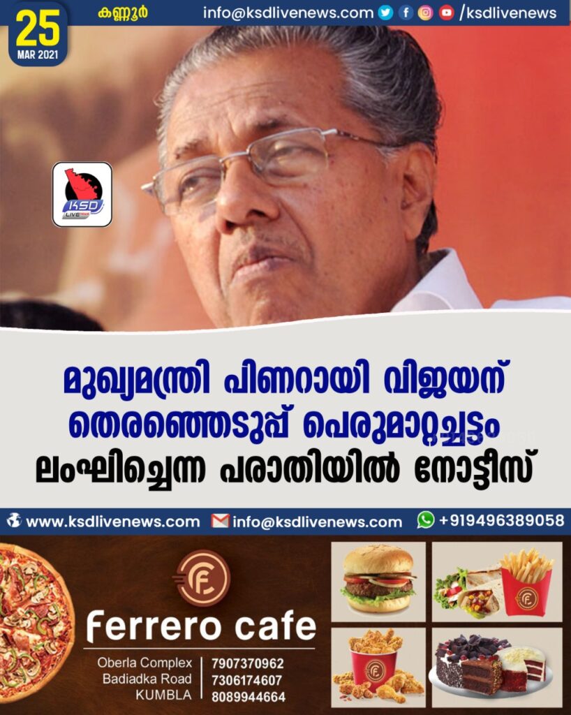 മുഖ്യമന്ത്രി പിണറായി വിജയന് തെരഞ്ഞെടുപ്പ് പെരുമാറ്റച്ചട്ടം ലംഘിച്ചെന്ന പരാതിയിൽ നോട്ടീസ്