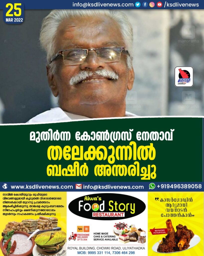 മുതിര്‍ന്ന കോണ്‍ഗ്രസ് നേതാവ് തലേക്കുന്നില്‍ ബഷീര്‍ അന്തരിച്ചു