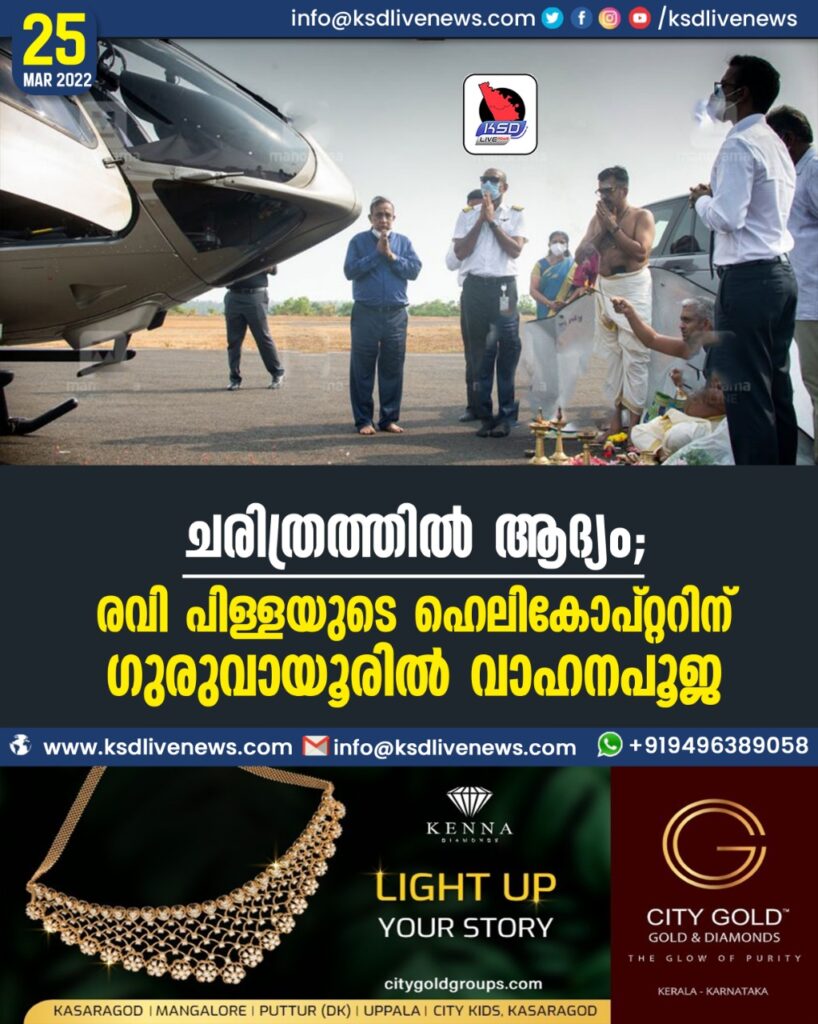 ചരിത്രത്തിൽ ആദ്യം; രവി പിള്ളയുടെ ഹെലികോപ്റ്ററിന് ഗുരുവായൂരിൽ വാഹനപൂജ