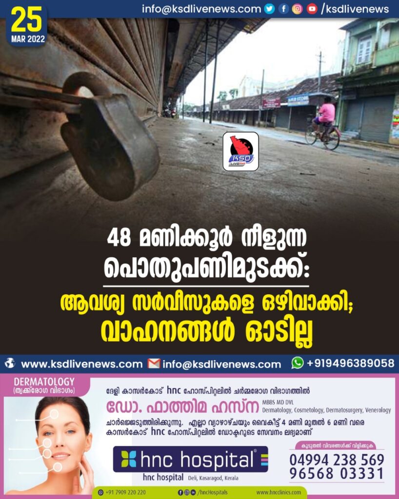 48 മണിക്കൂര് നീളുന്ന പൊതുപണിമുടക്ക്: ആവശ്യ സര്വീസുകളെ ഒഴിവാക്കി; വാഹനങ്ങള് ഓടില്ല