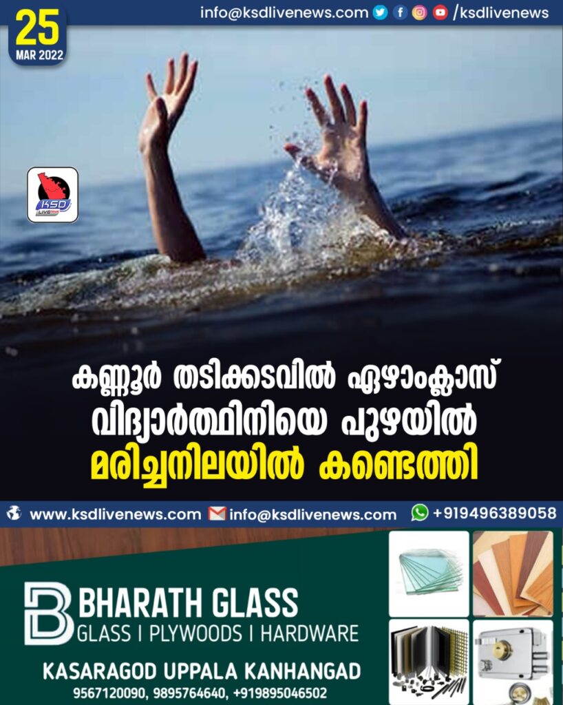 കണ്ണൂര് തടിക്കടവില് ഏഴാം ക്ലാസ് വിദ്യാര്ത്ഥിനിയെ പുഴയില് മരിച്ച നിലയില് കണ്ടെത്തി