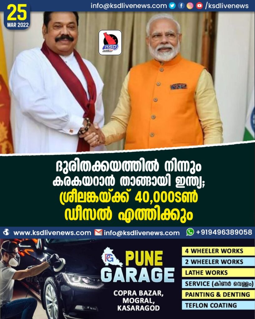 ദുരിതക്കയത്തില് നിന്നും കരകയറാന് താങ്ങായി ഇന്ത്യ; ശ്രീലങ്കയ്ക്ക് 40,000 ടണ് ഡീസല് എത്തിക്കും