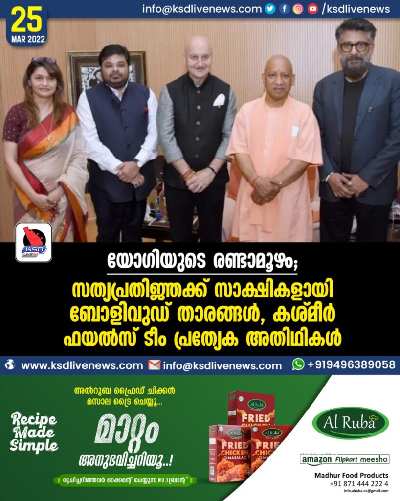 യോഗിയുടെ രണ്ടാമൂഴം; സത്യപ്രതിജ്ഞക്ക് സാക്ഷികളായി ബോളിവുഡ് താരങ്ങള്‍, ‘കശ്മീര്‍ ഫയല്‍സ്’ ടീം പ്രത്യേക അതിഥികള്‍